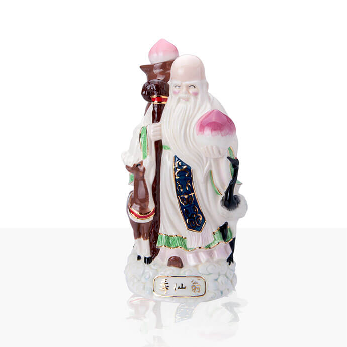 🔍 三仙藝術瓶 系列: 造型系列 容量: 750ml 尺寸: 11*11*23cm 貨號: 34 分類: 賀壽福氣 描述 商品簡述: 手工彩繪釉下彩燒製藝術酒瓶,瓶身有壽桃、丹頂鶴、梅花鹿,代表福祿壽三仙集於一身,背帶葫蘆,寓意福如(葫蘆)東海壽比南山,祝壽最佳選擇。 「福祿壽」三星又稱「才子壽」三仙,亦稱「三星拱壽」 相關商品 招財進寶, 賀壽福氣醉彌勒坐姿 招財進寶, 賀壽福氣新彌勒 – 坐姿(藍袍) 招財進寶, 賀壽福氣彌勒坐姿 賀壽福氣壽仙翁(小三仙)